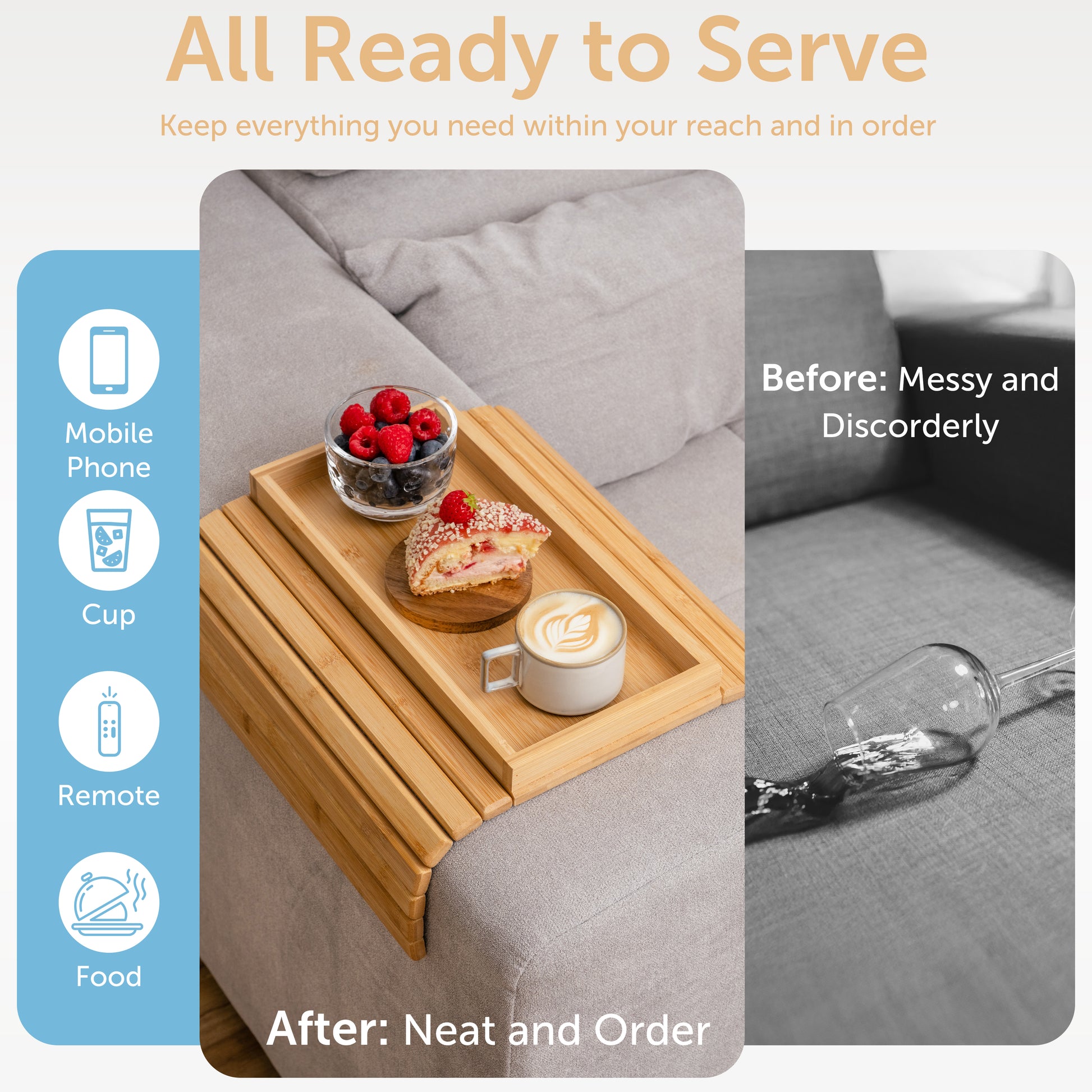 Enjoy ultimate comfort and style with this bamboo sofa arm tray – your perfect couch arm organizer, sofa snack tray, and luxury home essential!